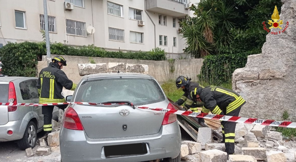 Le forti raffiche di vento che hanno flagellato anche il capoluogo siciliano nelle scorse ore, infatti, hanno causato danni in diverse zone della città, ma anche in provincia. Muri sono crollati in via Croce Rossa e in via Conte Federico causando danni ad alcune auto in sosta. Nessuno è rimasto ferito.