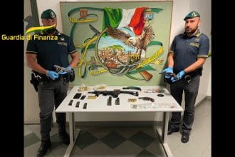 Nell’abitazione, oltre alla sostanza stupefacente, è stato scoperto un vero e proprio deposito di armi pronte all’uso: una pistola mitragliatrice di fabbricazione americana Sites Spectre M4 calibro 9 Parabellum, classificata anche arma da guerra, una pistola semiautomatica Colt calibro 45 e due revolver Smith & Wesson calibro 32 e 38, il tutto dotato delle relative cartucce, 250 in tutto, e 5 caricatori.