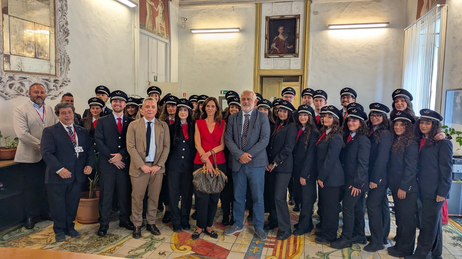 Cerimonia di giuramento, oggi a Palazzo Burgio di Villafiorita, sede dell’Assessorato ai Servizi Demografici ed Elettorali del Comune di Palermo, per 36 nuovi capitreno e quattro nuovi operatori di assistenza e vendita. Presenti Dario Falzone, Assessore al Personale del Comune di Palermo, la Professoressa Clara Celauro, Esperta del Comune di Palermo per i Trasporti e la Mobilità Sostenibile, e il Direttore Regionale Sicilia di Trenitalia, Pasquale Cammisa.