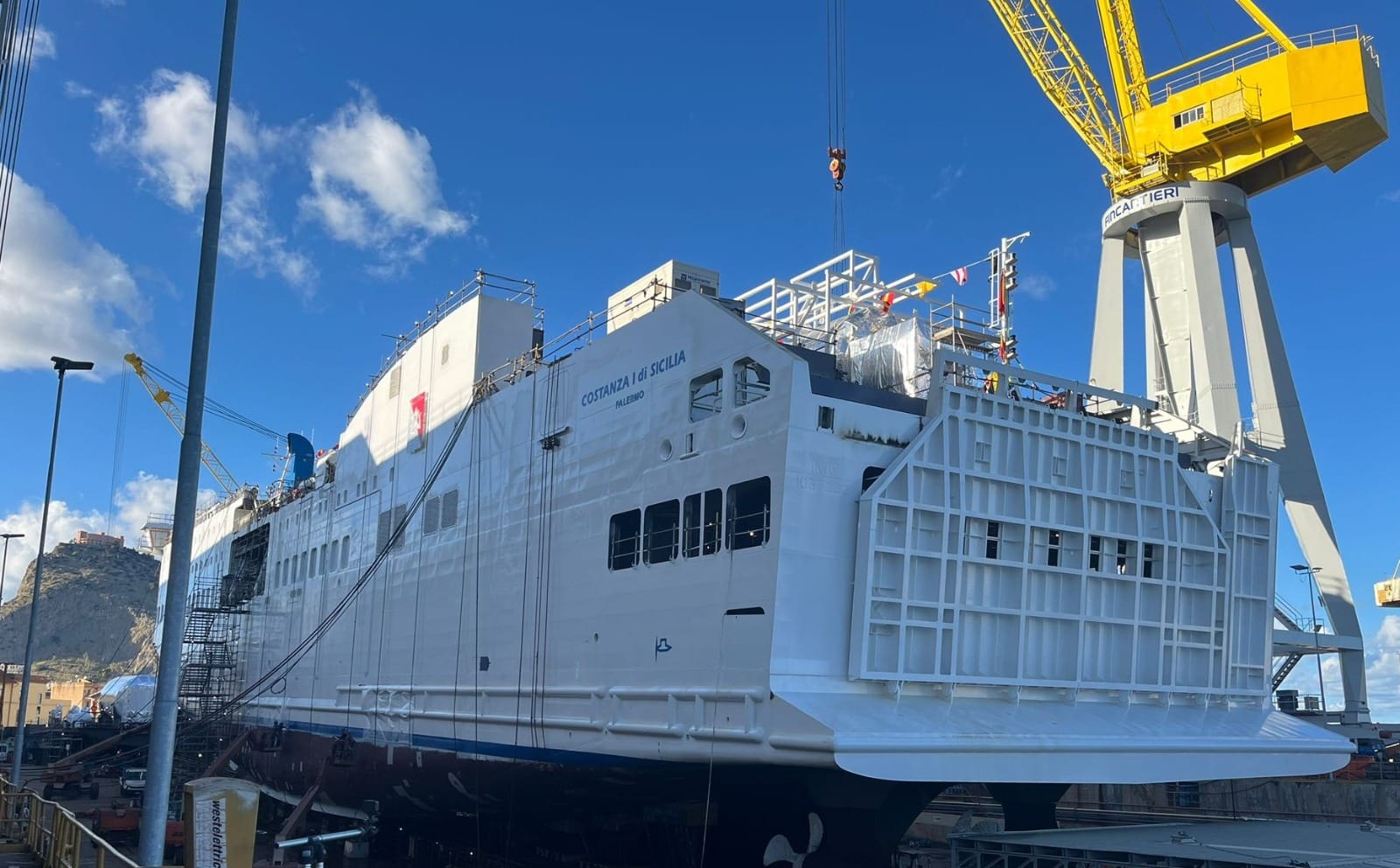 Cerimonia di varo, stamane, del nuovo traghetto ro-pax “Costanza I di Sicilia” che lo stabilimento Fincantieri di Palermo ha costruito per la Regione Siciliana. Il “Costanza I di Sicilia” è stato costruito interamente a Palermo e la consegna è prevista per l’estate del 2026. Si distingue per le sue caratteristiche tecnologiche avanzate, specialmente in tema di sostenibilità ambientale e sarà utilizzato per potenziare i collegamenti con le isole di Lampedusa, Linosa e Pantelleria.