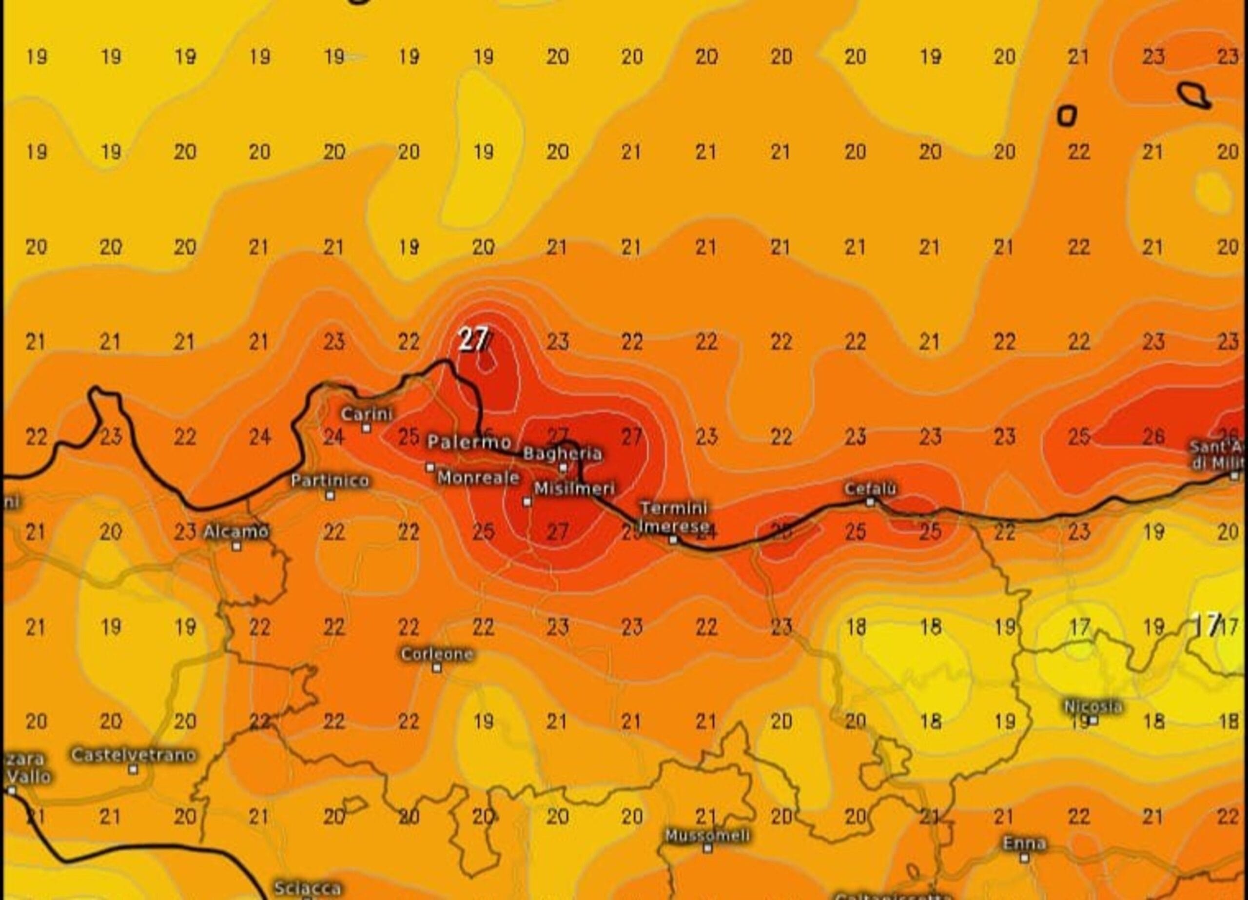 Temperature record in Sicilia a causa di forti venti meridionali. Prevista diminuzione delle temperature a partire da domani