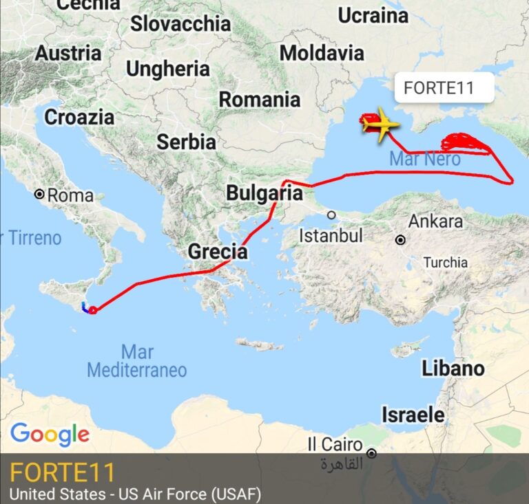 L’aereo che nei radar è identificato con il codice Forte11 è partito dalla Sicilia dopo aver dato il cambio ad un altro drone che nelle scorse ore ha compiuto lo stesso lavoro controllo del mar Nero. Intanto a Kiev sono ripresi i bombardamenti.