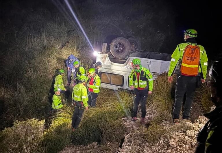 PALERMO – Intervento in notturna del Soccorso Alpino e Speleologico Siciliano a Montelepre per una coppia di turisti tedeschi finiti in una scarpata con il loro fuoristrada Land Rover Defender camperizzato.