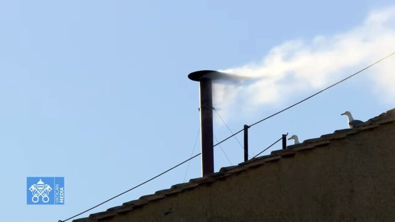 Fumata bianca alle 18.08. Alla quarta votazione e con la terza fumata del comignolo, è stato eletto il nuovo Papa. Campane a festa a San Pietro.