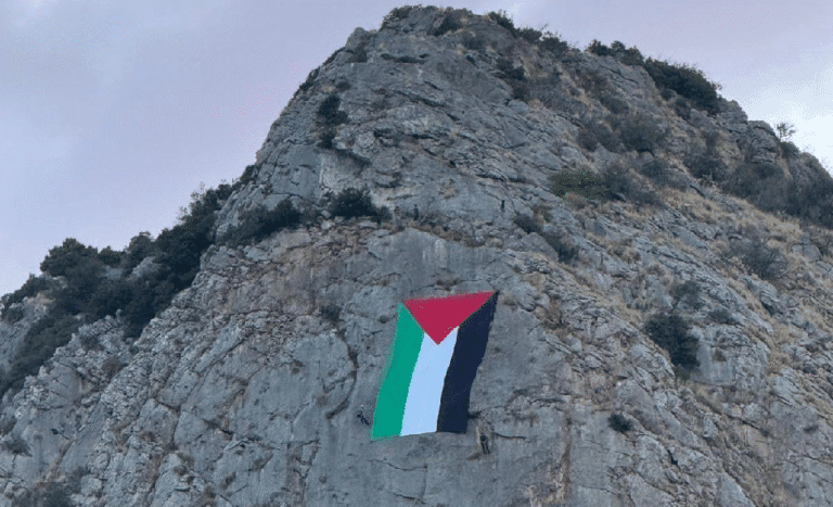 Una grande bandiera della Palestina è comparsa su una parete rocciosa di Monte Pellegrino, catturando immediatamente lo sguardo di passanti e automobilisti. Un gesto dal messaggio inequivocabile: fermiamo la guerra.