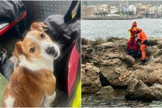 I Vigili del Fuoco salvano un cagnolino in uno scoglio in mezzo…