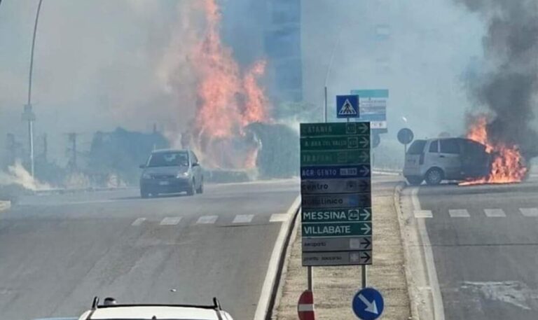 Tra le zone più colpite, la circonvallazione di Palermo. Qui il fuoco ha avvolto auto e strutture, mandando in tilt il traffico. “C’è l’inferno” dicono dalla sala operativa dei pompieri. A Bonagia diversi incendi con auto andate a fuoco sul ponte, mentre all’altezza della rotonda di via Oreto un capannone è stato distrutto dalle fiamme. Una densa nube nera copre la città.
