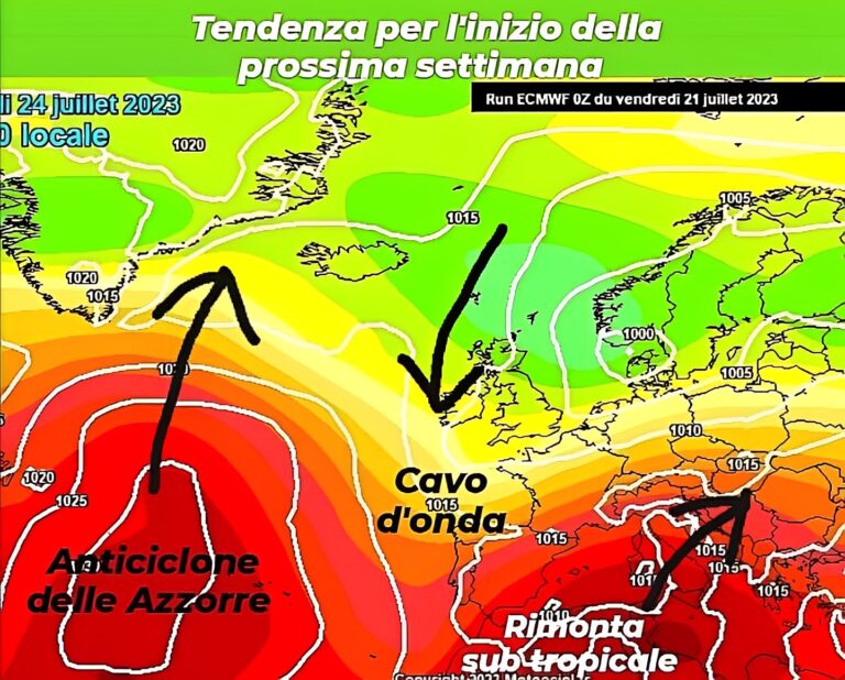 Successivamente, con il passaggio del cavo d’onda al Nord Italia, si assisterà ad una parziale attenuazione del caldo per via di venti di Maestrale. Non si tratterà però di una vera rinfrescata, con le temperature che rimarranno comunque 3-4° sopra la media del periodo.