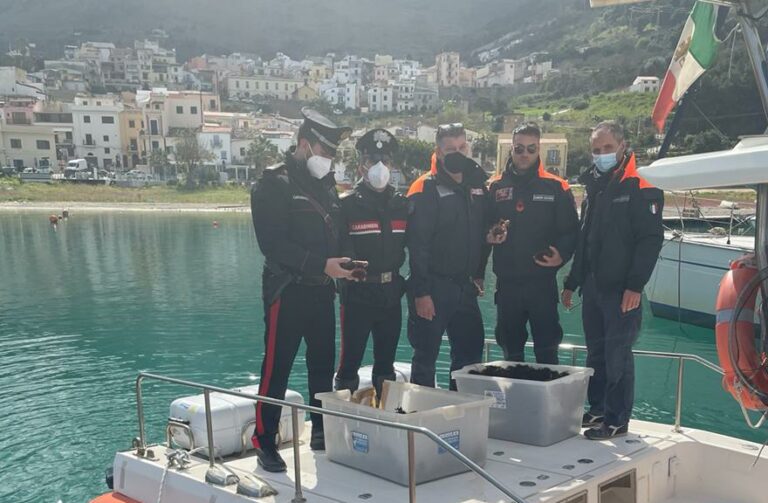 Trattandosi di una specie soggetta ai limiti di pesca di 50 esemplari al giorno, tutta la fauna ittica rinvenuta è stata posta sotto sequestro dai Carabinieri, tuttavia, poiché erano ancora vivi, i militari hanno chiesto supporto alla Capitaneria di Porto di Castellammare del Golfo che è immediatamente intervenuta sul posto. Il personale operante, a bordo della motovedetta della Capitaneria di Porto, ha provveduto a reimmettere i molluschi nel loro habitat naturale mentre il responsabile dovrà pagare una sanzione pecuniaria pari a 6000 euro.